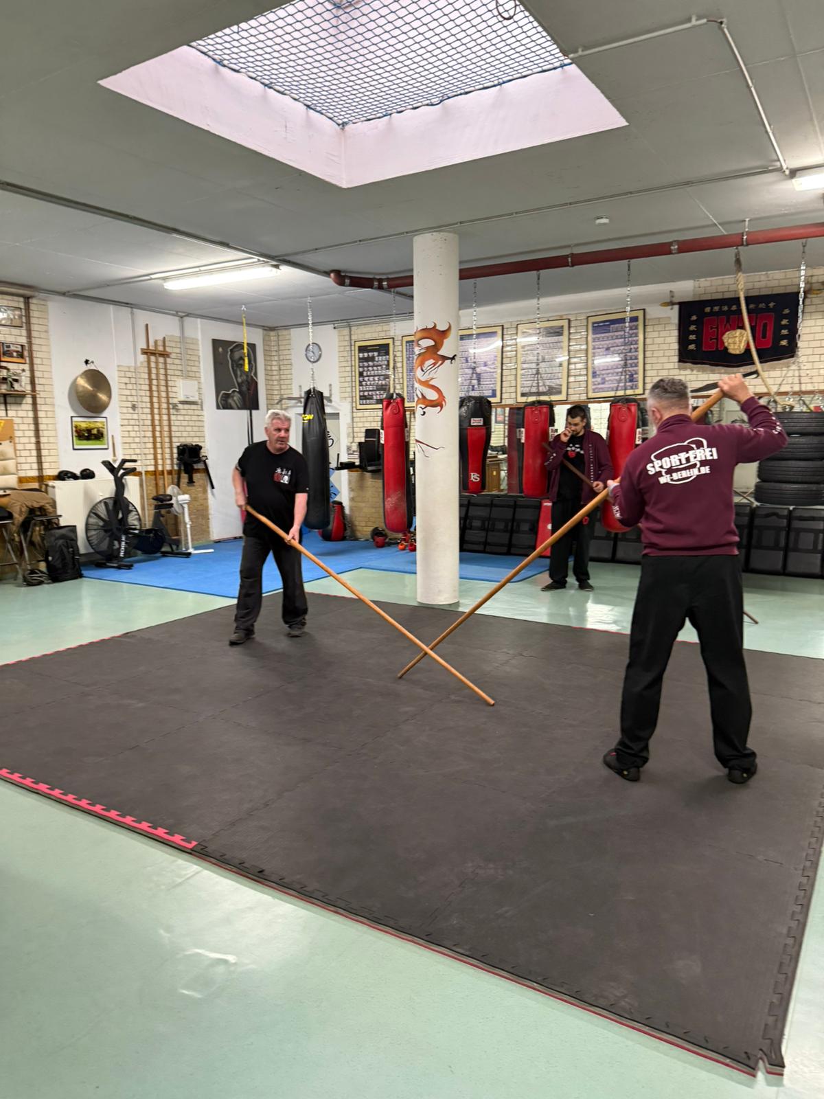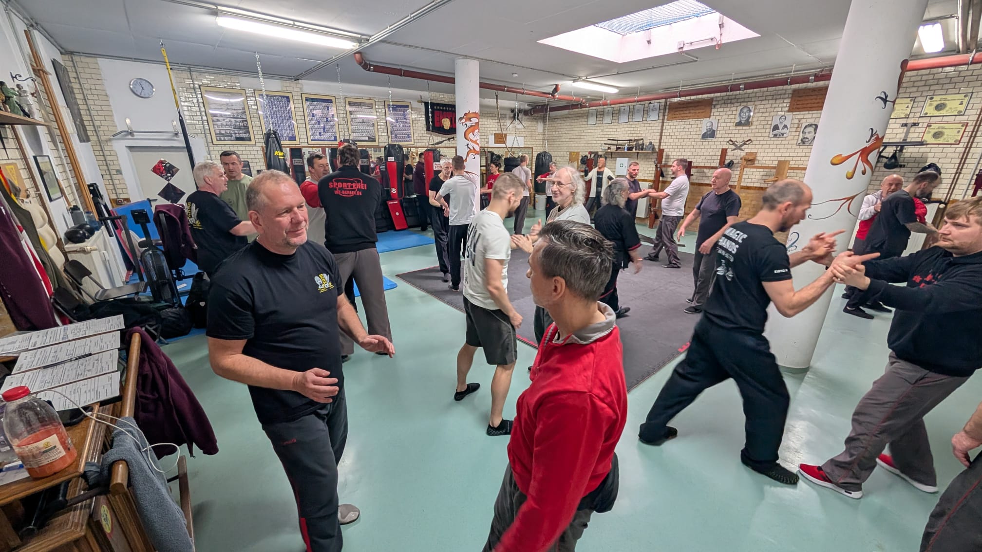 ​GM Frank Schmalz versteht es, adressatengerecht und auf hohem Niveau die Erkenntnisse aus den „Magic Hands“ in das klassische WingTsun zu überführen. Am Freitag erfolgte der Auftakt mit einer Waffenklasse (Langstock und Doppelmesser) sowie einer sehr intensiven Kleingruppe.